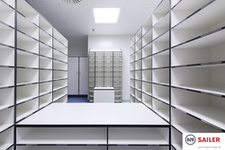 Alle Beschriftungen von Schuh- und Ausgabefächern erfolgte mittels magnetisch befestigter Edelstahl-Schilder mit Elektrolyse-Beschriftung, was eine leichte Reinigbarkeit und unkomplizierte Anpassungsmöglichkeit der Beschriftung ermöglicht.