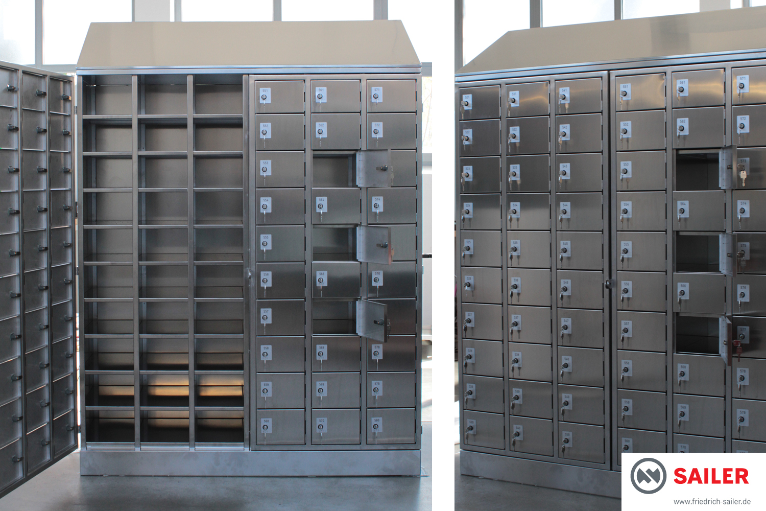 Aufgabe: Hygienekonforme Einrichtung von Sozialräumen mit Trennung in Schwarz- und Weiß-Bereich inklusiv durchgängigem Schlüssel- und Nummernsystem für je einen Schwarzkleidungsschrank, Weißwäsche-Ausgabefach und Equipmentschrank je Mitarbeiter inkl. Planung, Einbringung und Montage