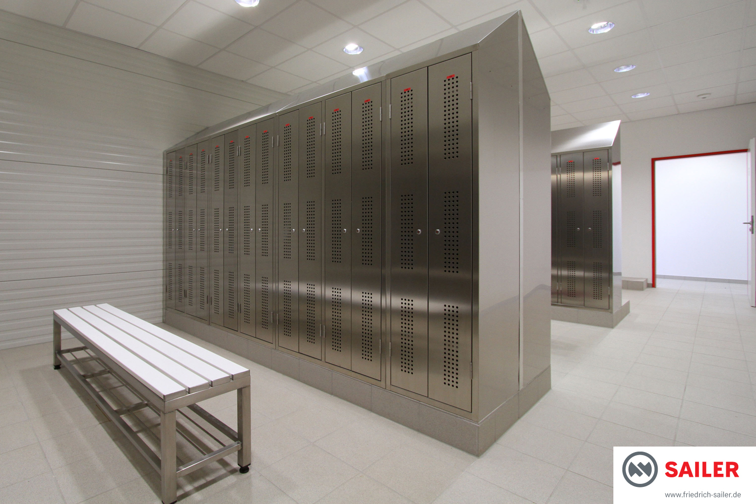 Besonderheit: Bei der Planung der Sozialräume wurde bereits zusätzlicher Platz für weitere Spinde vorgesehen, die bei weiterem Wachstum ohne bauliche Maßnahmen kostengünstig nachgerüstet werden können.