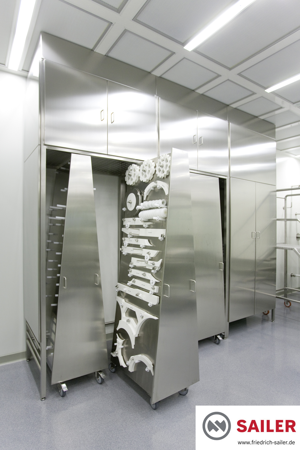 Neuentwicklung, individuelle Anpassung und Produktion von Lösungen zur hygienischen Lagerung und zum effizienten Transport von Formatsatzbauteilen einer sterilen Abfülllinie in der Reinraumklasse B