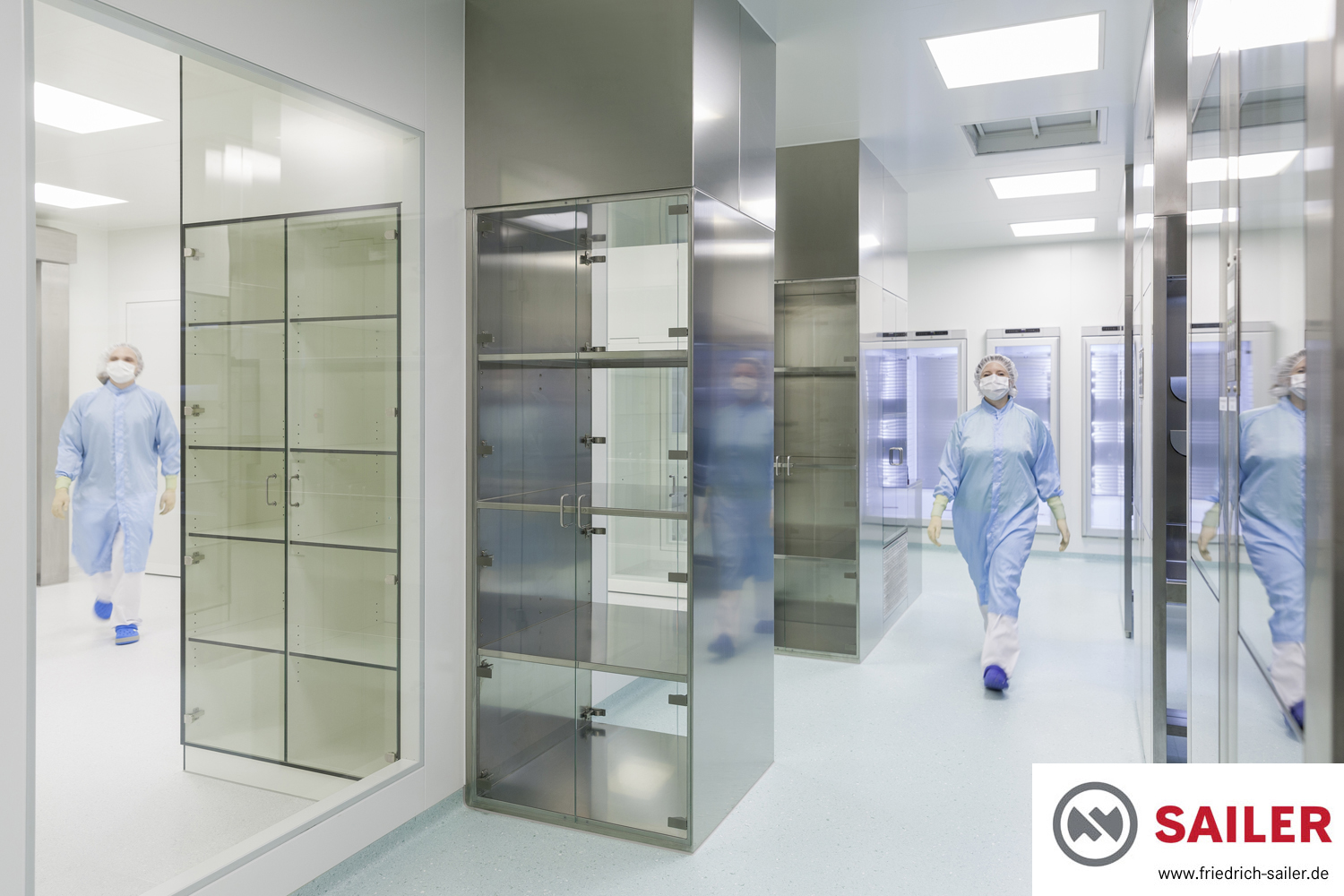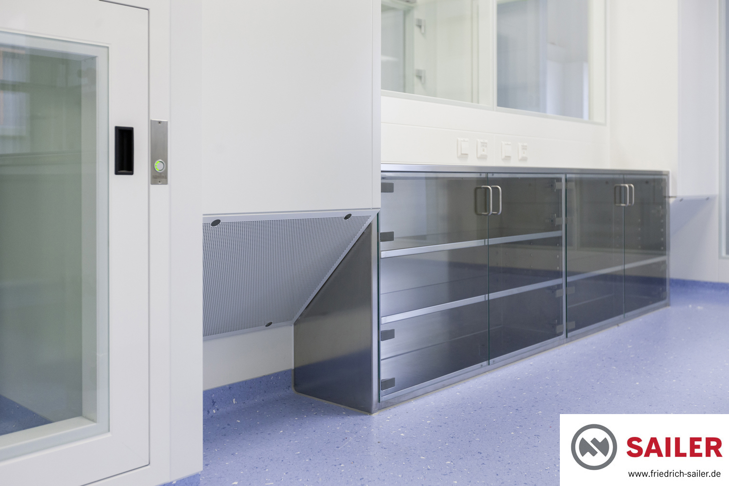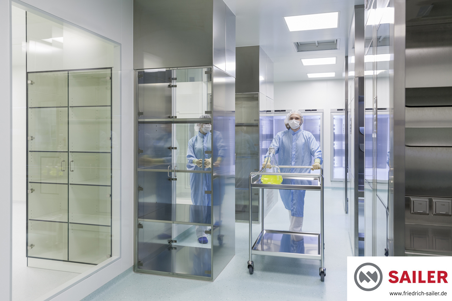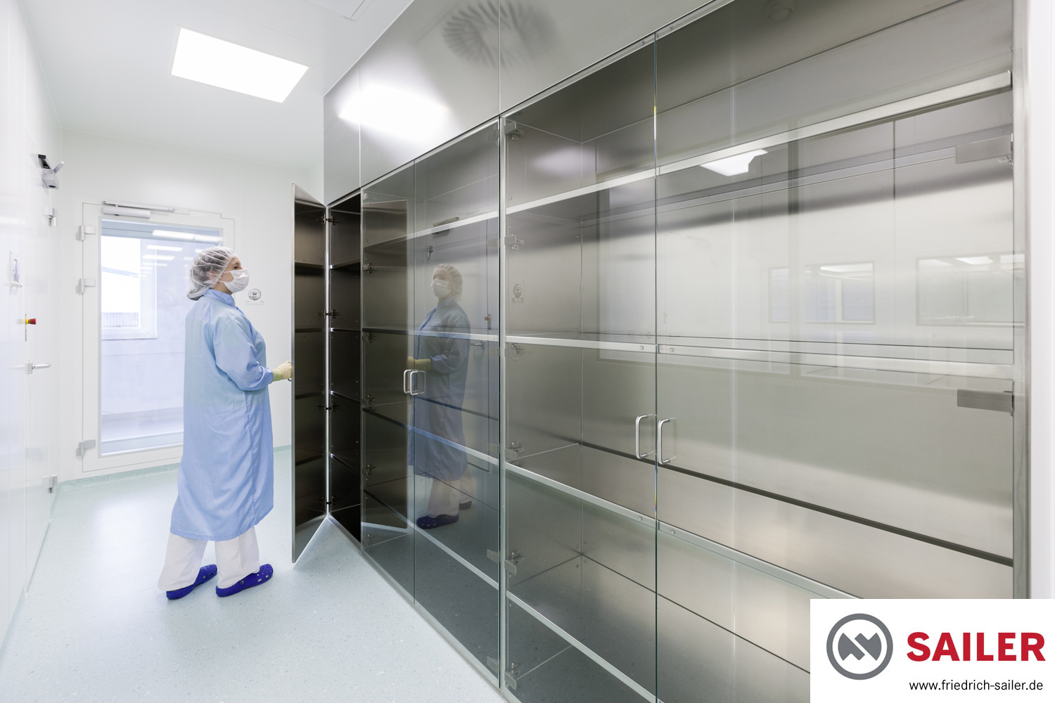 Bei vielen Lagerschränken sowohl aus HPL als auch aus Edelstahl kamen auf Kundenwunsch vollflächige Glastüren zum Einsatz, die einen besonders guten Einblick bieten und damit die Arbeit der Mitarbeiter erleichtern.